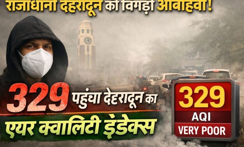 उत्तराखंड में भी नए साल का जश्न धूम-धाम और जोरों पर मनाया गया, देश-विदेश के आगंतुक पर्यटकों की आमद से राजधानी समेत प्रदेश के कई जिले 31 दिंसबर को पटे नजर आए। वहीं देवभूमि में इस जश्न के बाद अब प्राण वायु की गुणवत्ता खासा बिगड़ चुकी है, इस कड़ी में राजधानी देहरादून की हवा की गुणवत्ता सबसे खराब श्रेणी में जा पहुंची है। जहां न्यू ईयर से पहले बुधवार को देहरादून का AQI 318 और 28 दिसंबर को 301 AQI दर्ज किया गया तो वहीं आज राजधानी देहरादून का AQI इंडेक्स 329 पहुंच चुका है।