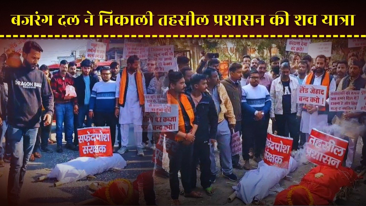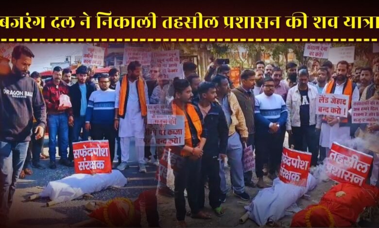 सरकारी जमीनों पर अवैध कब्जे को लेकर भड़का आंदोलन, बजरंग दल ने निकाली शव यात्रा