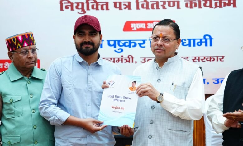उत्तराखंड के उन नौजवानों की मुराद आज मुख्यमंत्री पुष्कर सिंह धामी ने पूरी कर दी जिनकी ख्वाहिश सफाई निरीक्षक बनने की थी। पालिका केंद्रीकृत सेवा के तहत चयन हुए सफाई निरीक्षकों को सीएम धामी ने नियुक्ति पत्र सौंपे। सीएम धामी ने इस मौके पर कहा कि उनकी ख्वाहिश है कि राज्य में कोई भी काबिल नौजवान खाली नही रहना चाहिए सबके पास रोजगार होना चाहिए और बेरोजगारी खत्म करने के लिए उनकी सरकार लगातार प्रयासरत हैं। वहीं धामी ने कहा कि उनकी सरकार बीते चार साल में तीस हजार से ज्यादा नौजवानों को सरकारी नौकरियां दी हैं। माना जा रहा है जब से उत्तराखंड राज्य बना है सरकारी नौकरियों में बम्पर भर्तियों को रिकार्ड धामी सरकार के नाम ही दर्ज है।