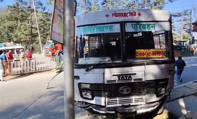 उत्तराखंड के चंपावत जिला स्थित लोहाघाट में आज एक बड़ा सड़क हादसा होते-होते टल गया। दरअसल, लोहाघाट डिपो की रोडवेज बस लोहाघाट से काशीपुर के लिए रवाना हुई ही थी कि बस अड्डे से मात्र 10 मीटर की दूरी तय करते ही बस के ब्रेक अचानक फेल हो गए। वहीं बस चालक नंदन सिंह फर्त्याल ने अपनी सूझ बूझ व हिम्म्त का परिचय देते हुए बस को डिपो परिसर की रेलिंग से टकराकर सामने बनी दीवार पर टकरा दिया। गनीमत यह रही कि उस समय हर समय भीड़-भाड़ स लबरेज रहने वाले राष्ट्रीय राजमार्म पर राहगिरों की संख्यां कम थी अन्यथा एक बड़ा और जानलेवा हादसा घटित हो सकता था।